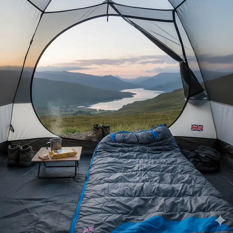 Insulated Sleeping Mat: Arguably more important than the bag itself. Ground cold conducts heat away faster than air. Minimum R-value 3 for three-season camping, R-value 5+ for winter. Budget £30-£150.